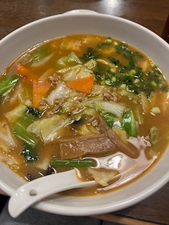 先日営業後にいったラーメンやさん🍜私が食べたのは味噌ラーメン⭐️ めっちゃ喋って笑って楽しかった〜😆 ラーメンと餃子と胡麻団子…沢山食べて腹パン幸せ🩷 今日は定休日です🙇♀️