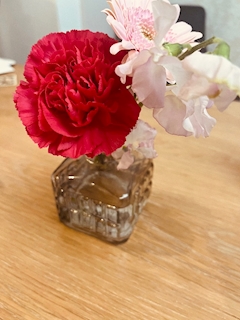 こんばんは 今日は 昨日の疲れから ちゃんとごはん 作る元気がなかったけん 明太パスタとスクランブルエッグ食べたと🥹 お寿司たべたかー いただいた お花🌸をさして でも昨日差し入れしてくれた なごやん おいしかったなー💕 ありがとう🥰 甘いものとかおつまみとか 🍺とか 幸せです 今日出勤したら 来週は ハーブティー🌱 買いに行く楽しみもあるけん😊 今日もがんばろっ🥰💕